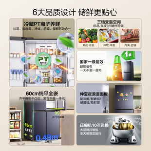 HCK哈士奇401LMax双门厨房复古冰箱一级能效变频嵌入大容量