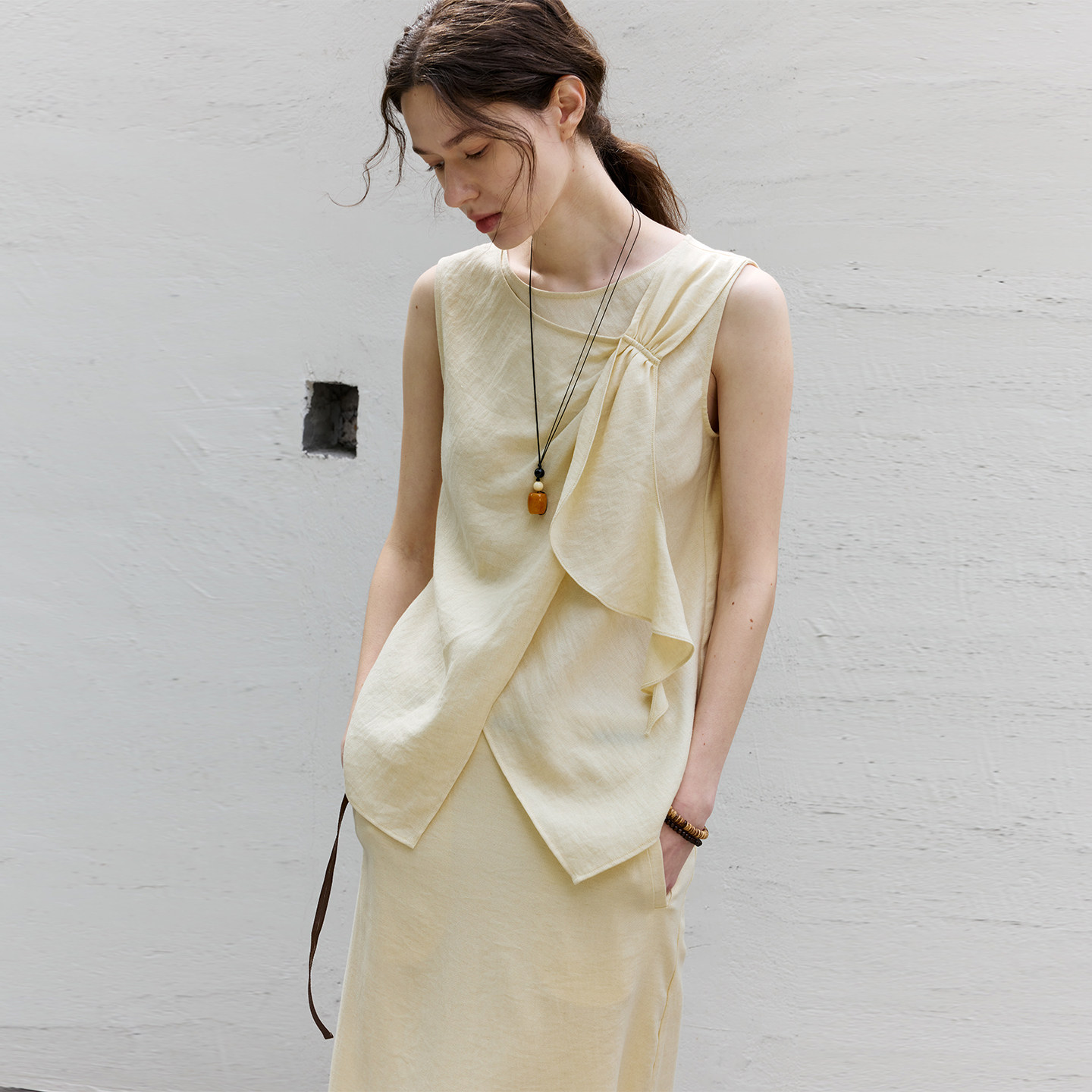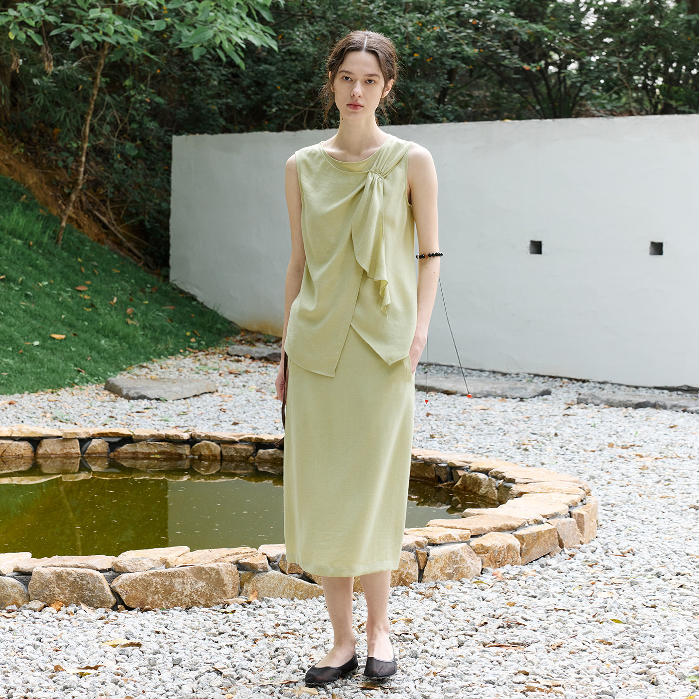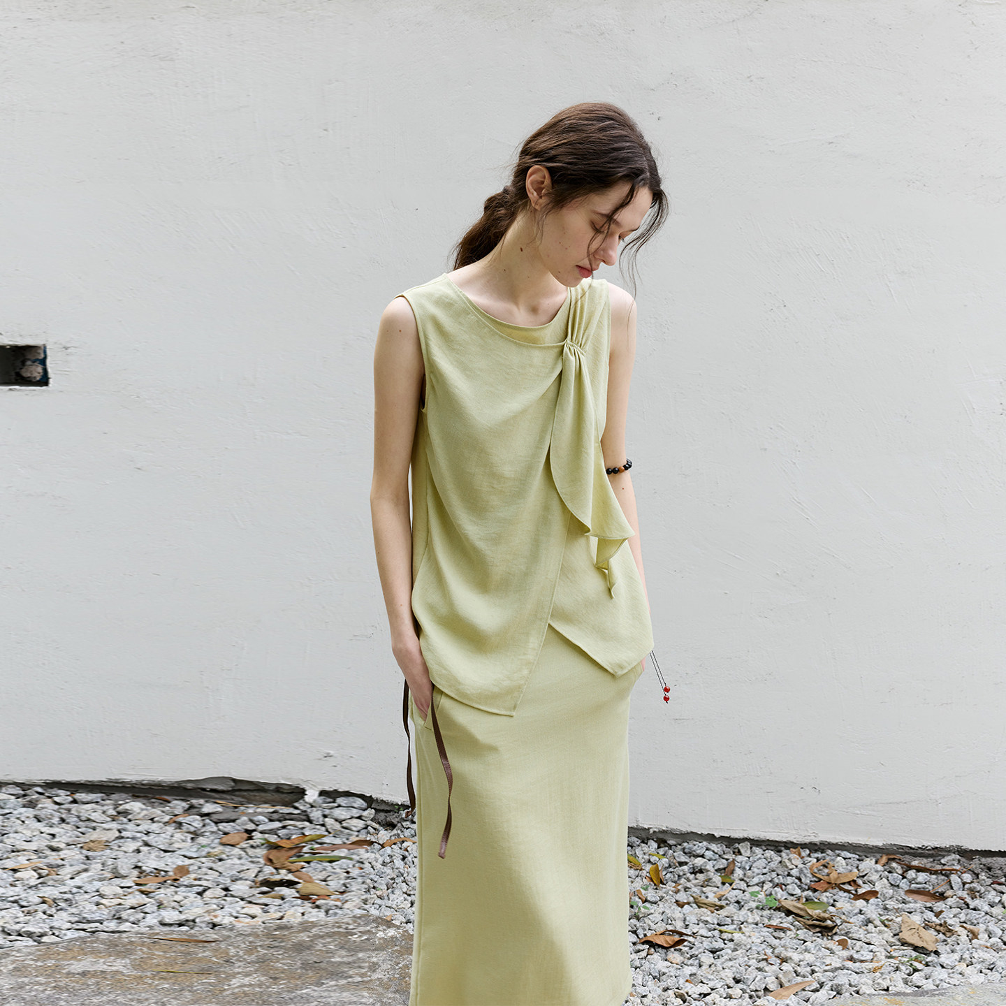 上衣女亚麻直筒裙半身裙套装 NON RESTRAIN莱赛尔天丝飘带开叉无袖