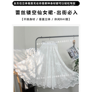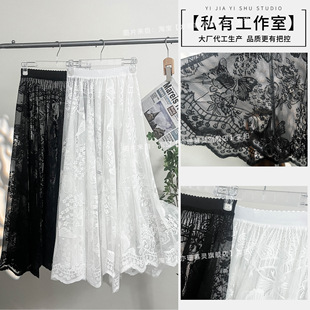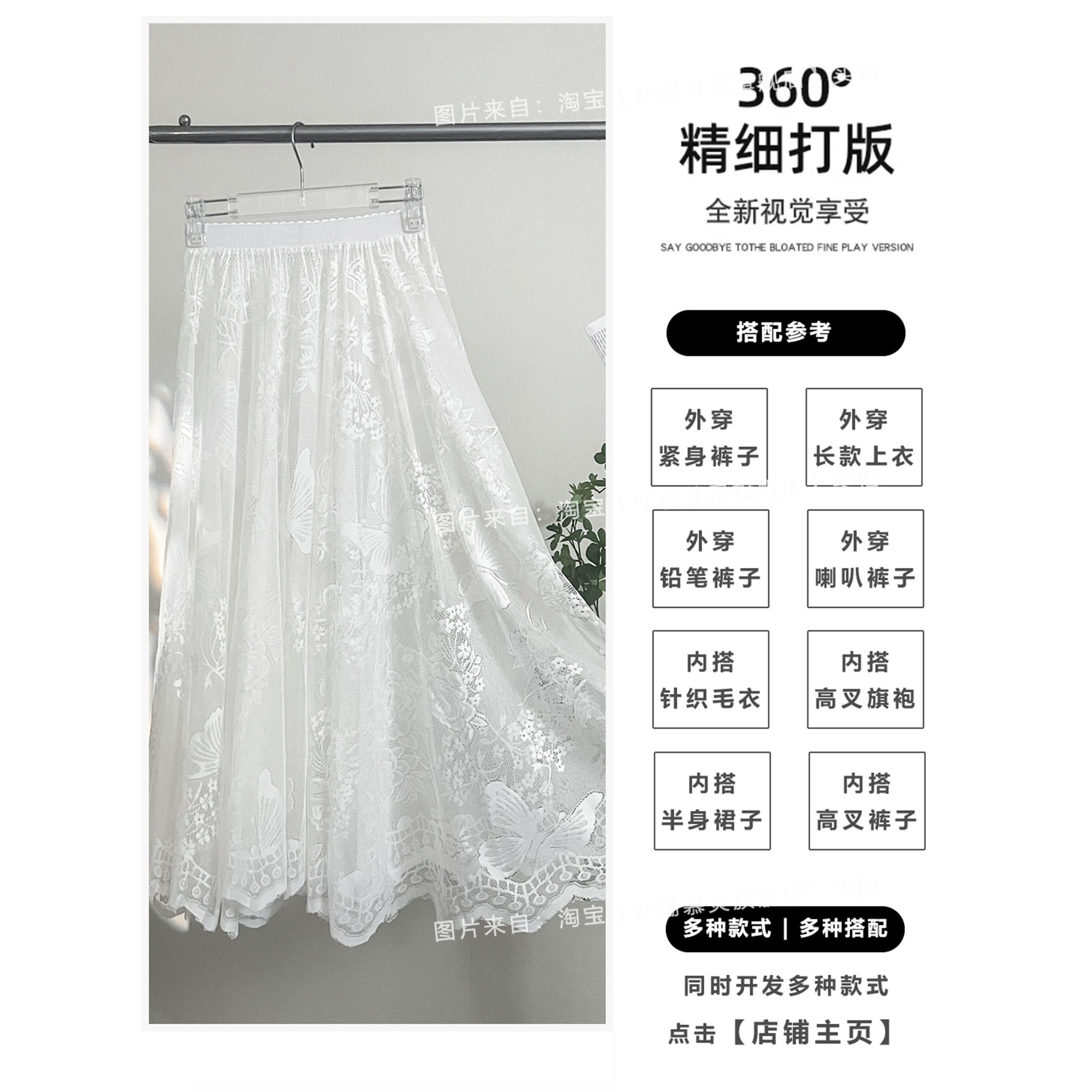 蕾丝花边半身裙蓬蓬伞裙 A字大摆裙中长款 旗袍内搭衬裙夏季 女新款
