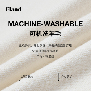 翻领上衣秋季 Eland衣恋毛衣女宽松短袖 新款 可机洗羊毛