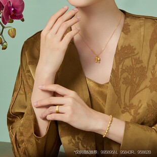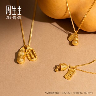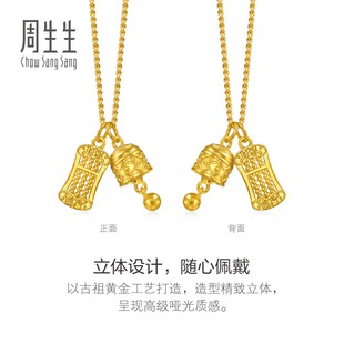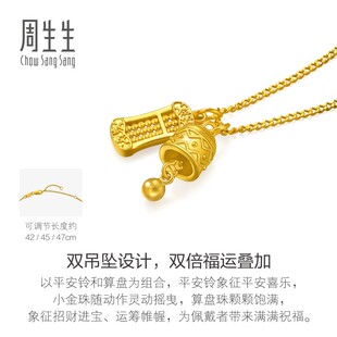 周生生文化祝福足金平安铃算盘双吊坠古法黄金项链95895N