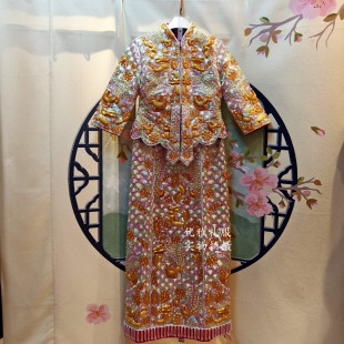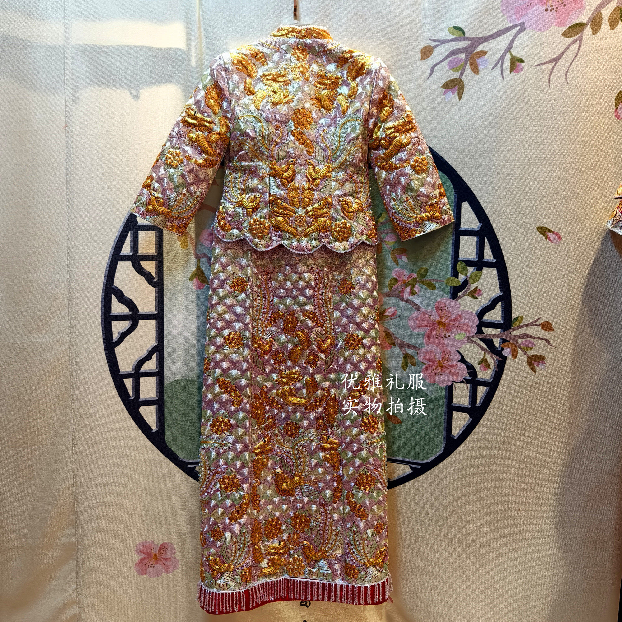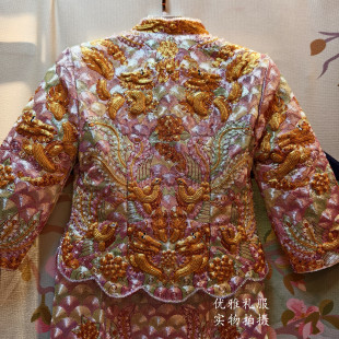 粉紫系列 水晶钻手绣褂皇 纯手工满绣龙凤褂裙褂 全新订做 定制