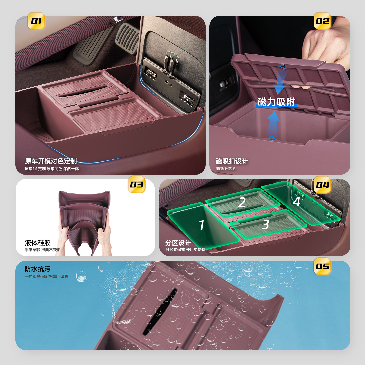 适用于小米SU7中控下层储物盒硅胶分区收纳盒配件车苏专用置物垫