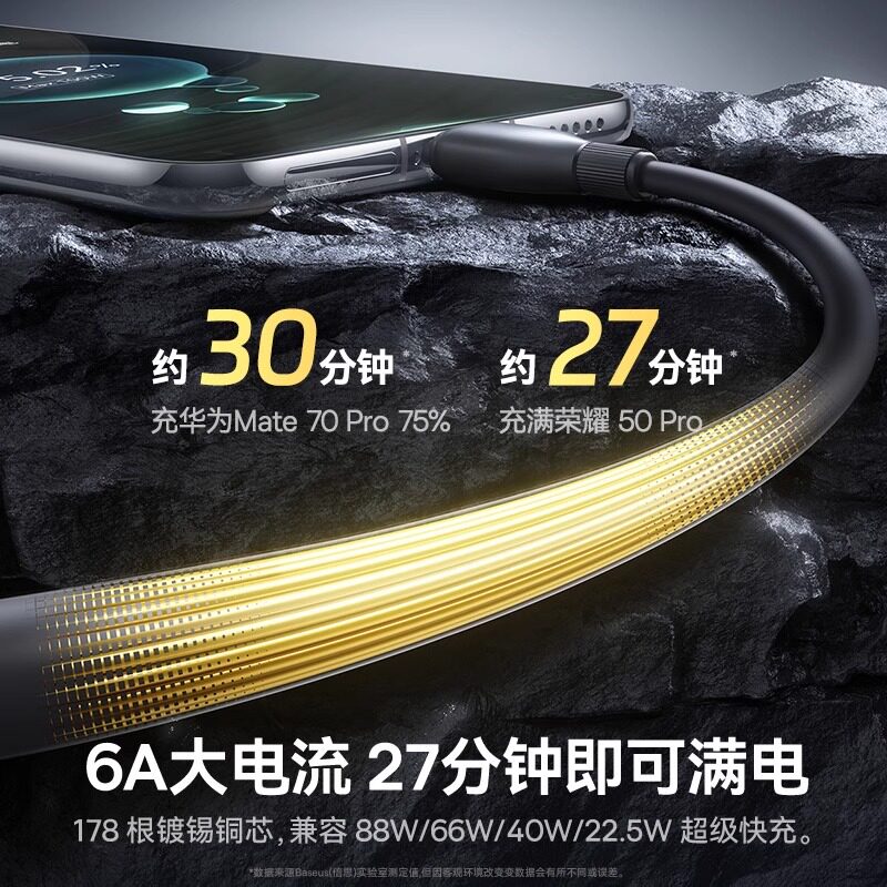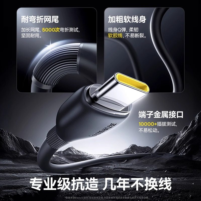 倍思type c数据线适用华为mate7080小米OPPOvivo安卓充电线100W88W66W手机usb转tpyec超级快充笔记本2m加长线