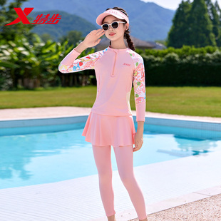 冬保暖温泉游泳套装 2025新款 长裤 特步儿童泳衣女孩分体中大童长袖