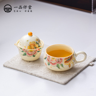 刺绣牡丹户外旅行茶具露营一人饮泡茶杯茶具户外便携包送闺蜜礼物