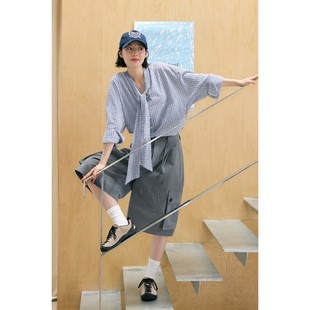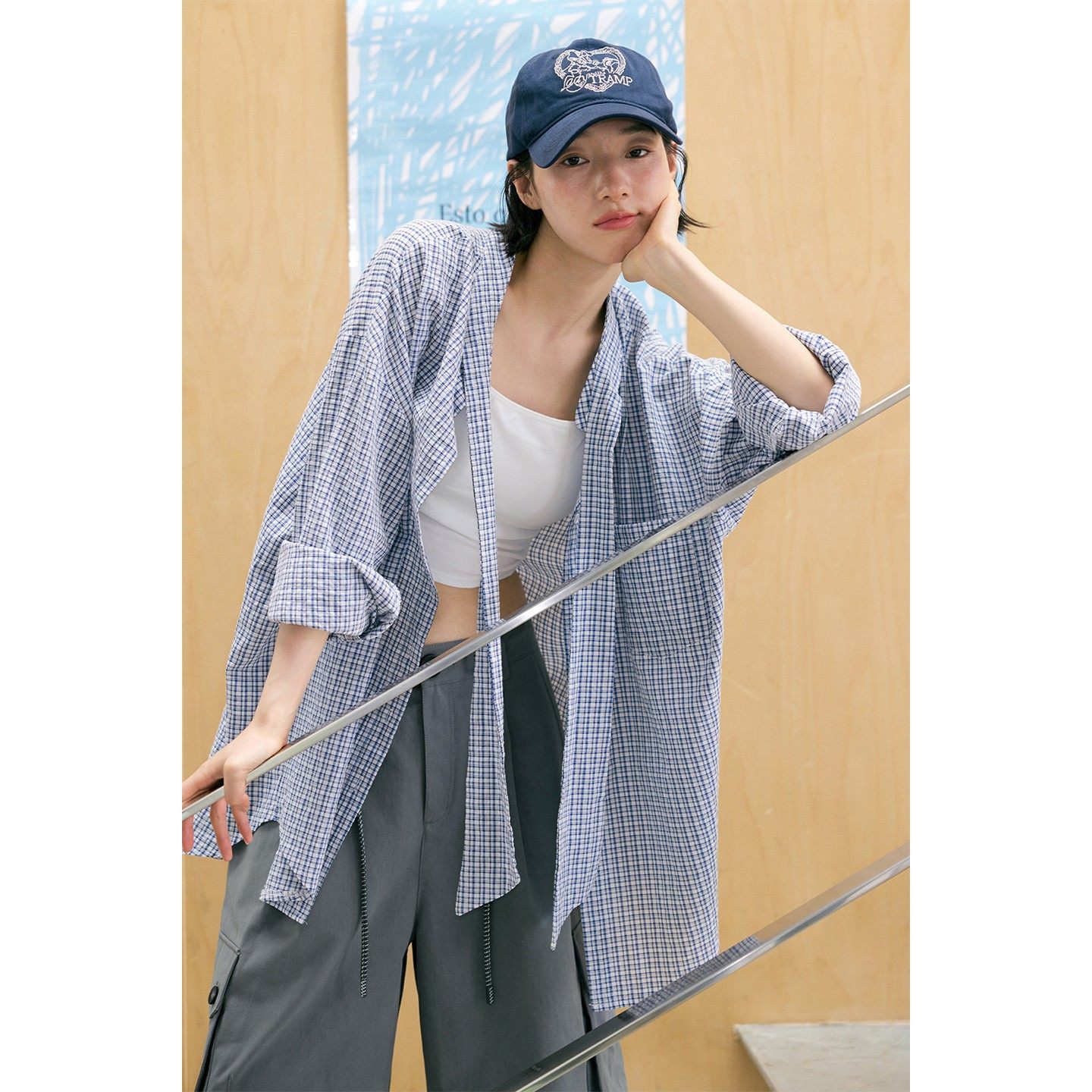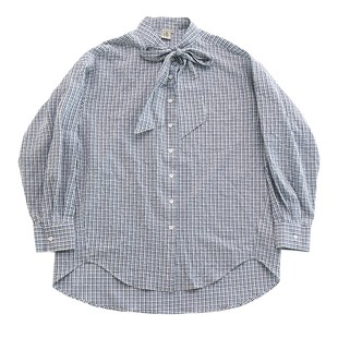 衬衫 亲肤棉感混纺肌理蓝白格飘带领大版 6837 桔梗风铃 鹿与飞鸟