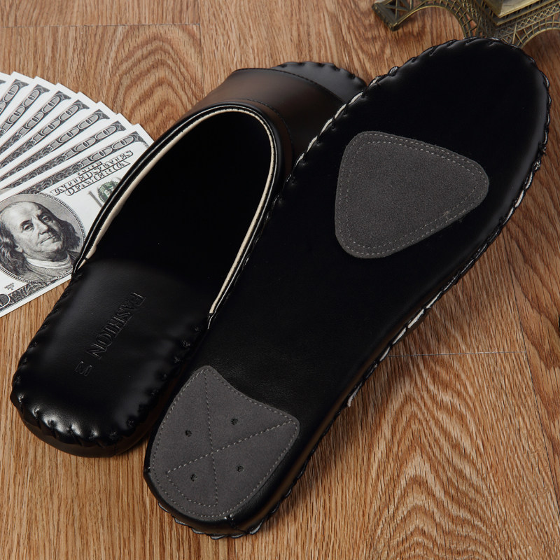 夏耐磨防滑地板静音软底手工室内凉鞋 居家皮拖鞋 男士 2020新款