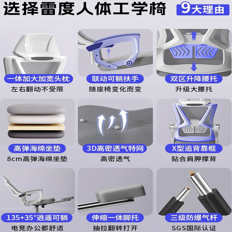 舒服久坐电脑椅家用人体工学椅学生电竞椅卧室椅子靠背椅办公座椅
