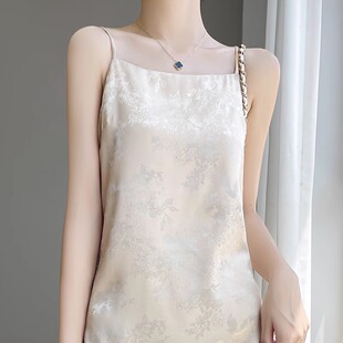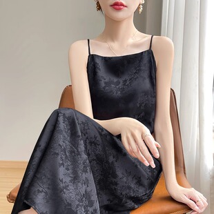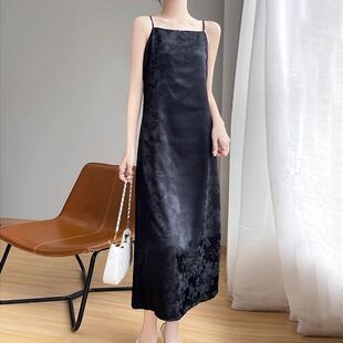 2025新款 一字领醋酸吊带裙国风提花宽松气质提花显瘦真丝连衣裙女