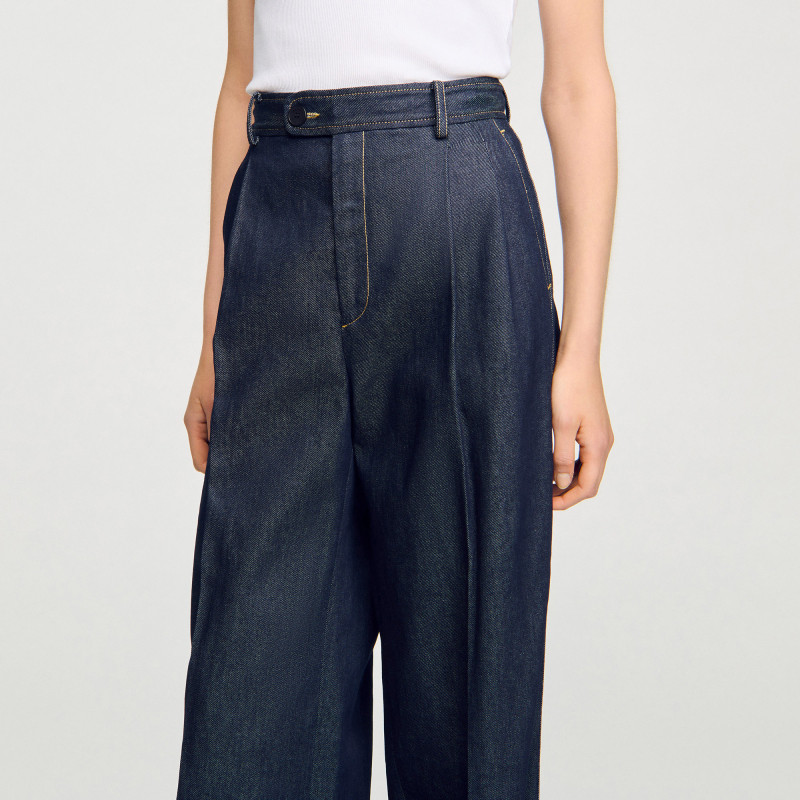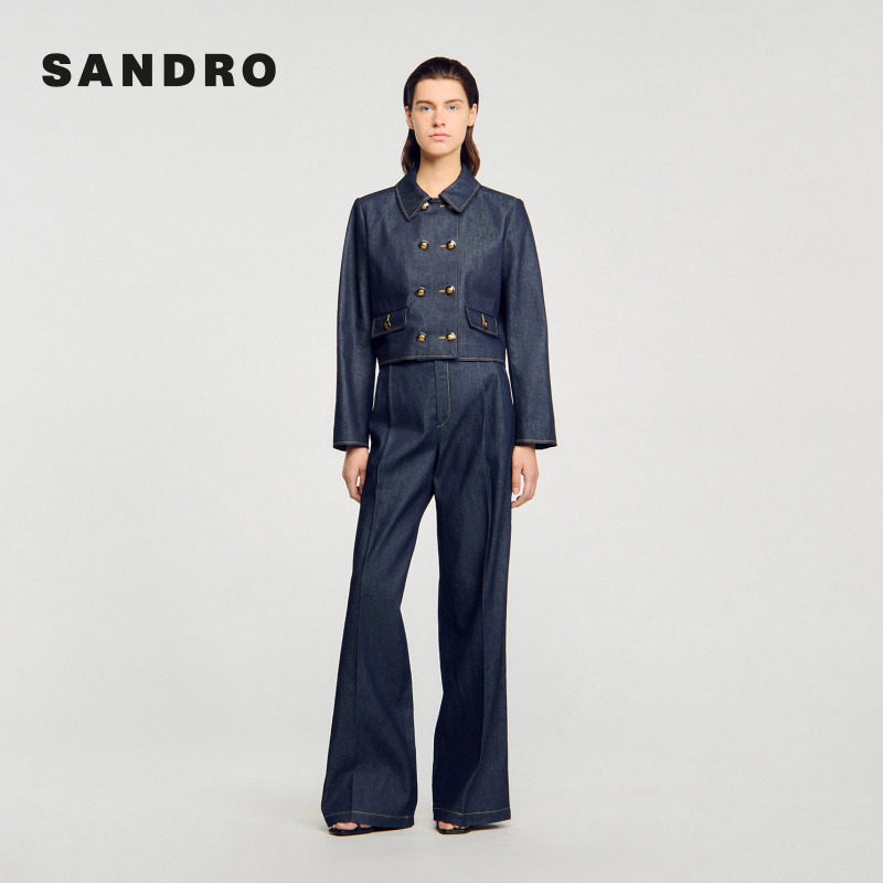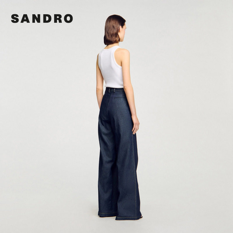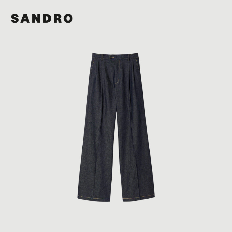 高腰阔腿牛仔裤 季 复古丹宁棉质长款 法式 末6折SANDRO2025秋冬女装