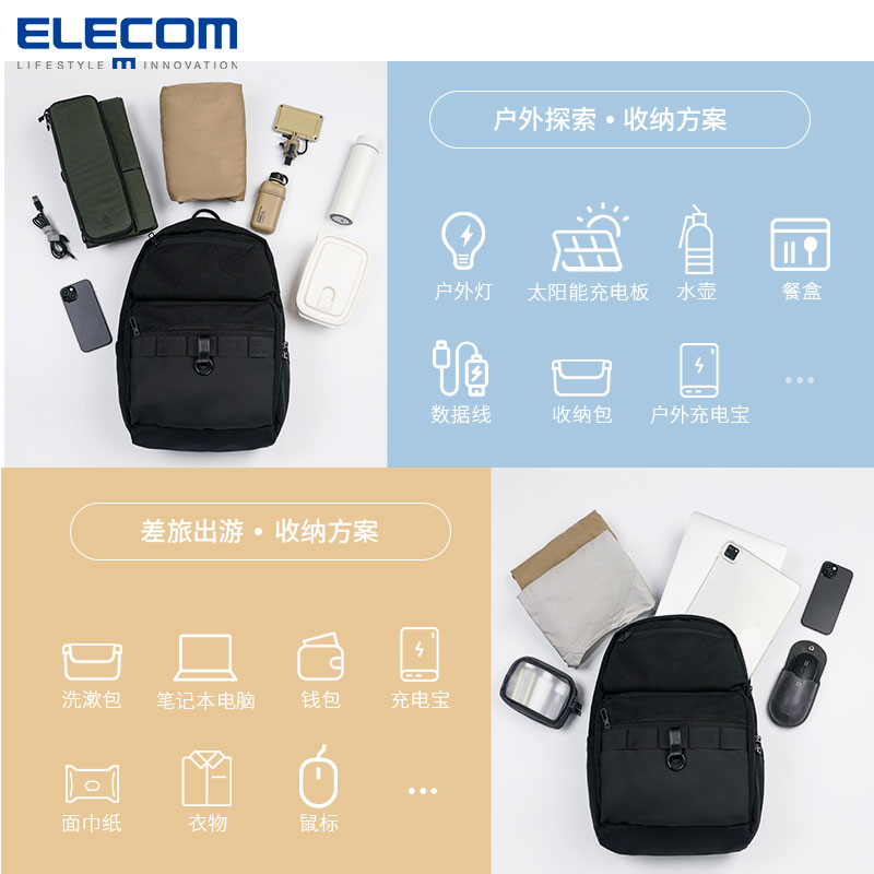 ELECOM休闲双肩包15.6寸笔记本电脑包多功能背包通勤包户外旅行包