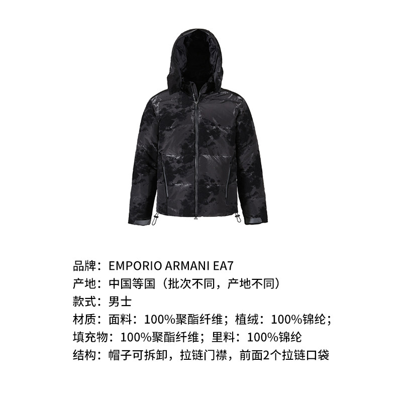 甄品精选 6RPB26 EA7阿玛尼 连帽夹克棉服外套 PNEPZ 男士