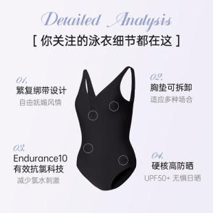 Speedo 复古绑带连体泳衣高级感遮肚显瘦女士泳衣游泳温泉 速比涛