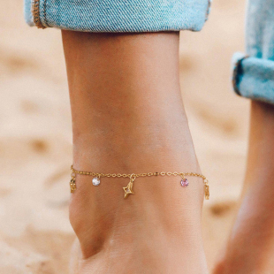 FETTERO原创金色白星锆流苏链脚链女轻奢小众脚环ins风高级感礼物