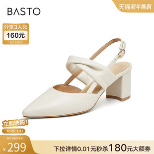 后空女凉鞋 尖头粗跟玛丽珍高跟鞋 RUF35BH4 商场新款 百思图夏季