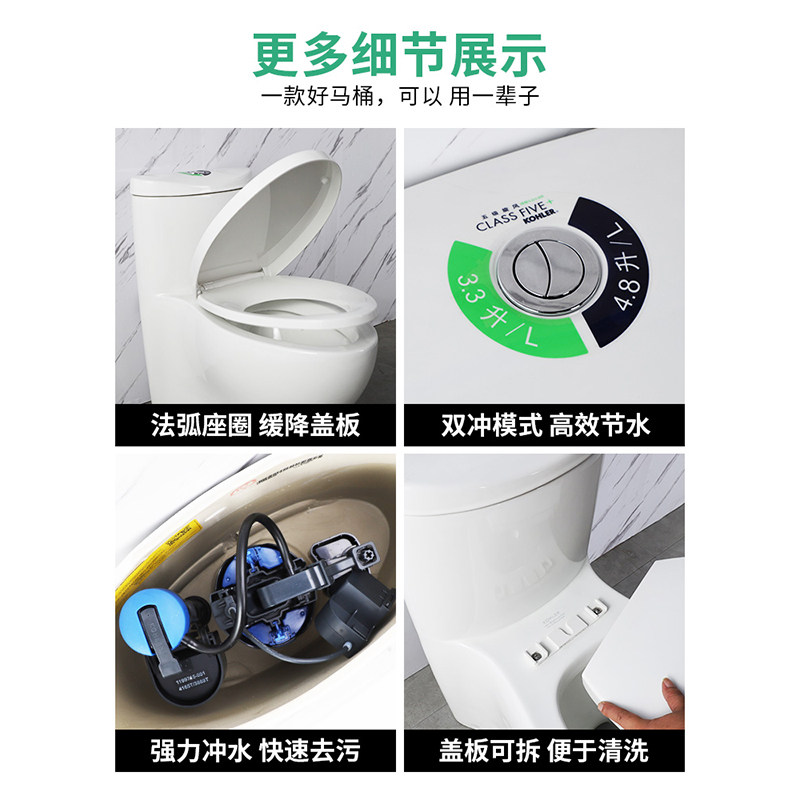 科勒马桶坐便器水漾五级旋风静音节水连体家用抽水马桶3869