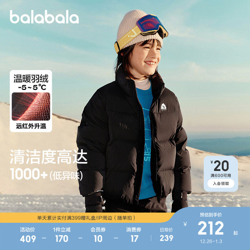 巴拉巴拉童装 男童女童保暖宝宝防水加厚保暖外套潮儿童 羽绒服冬装
