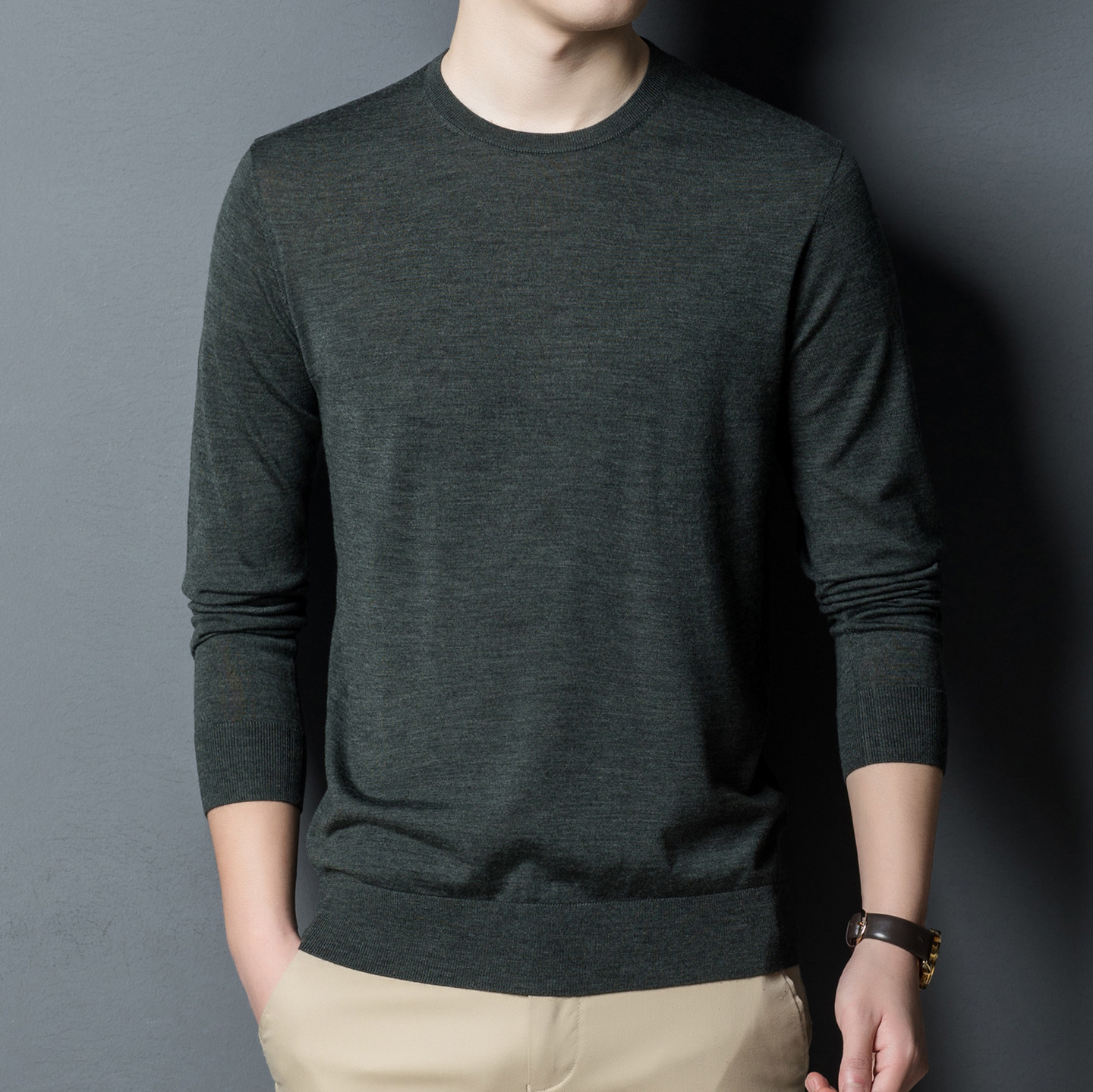 毛衣 半高领软糯宽松套头针织打底衫 双股加厚100%纯羊毛衫 男秋冬季