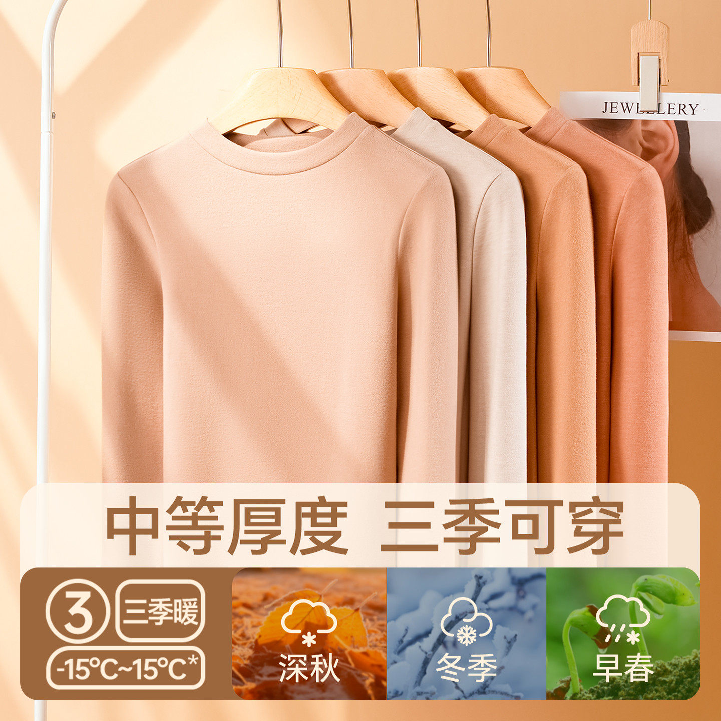 冬季 2件 羊毛蚕丝保暖内衣女加厚加绒秋衣内搭上衣德绒发热打底衫
