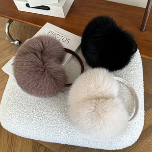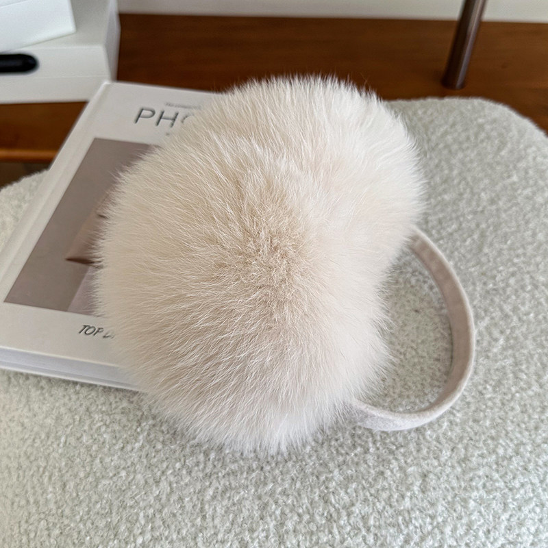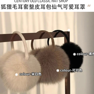 奶油色狐狸毛可爱耳捂可伸缩韩版 纯色保暖耳罩冬女毛绒耳套耳暖