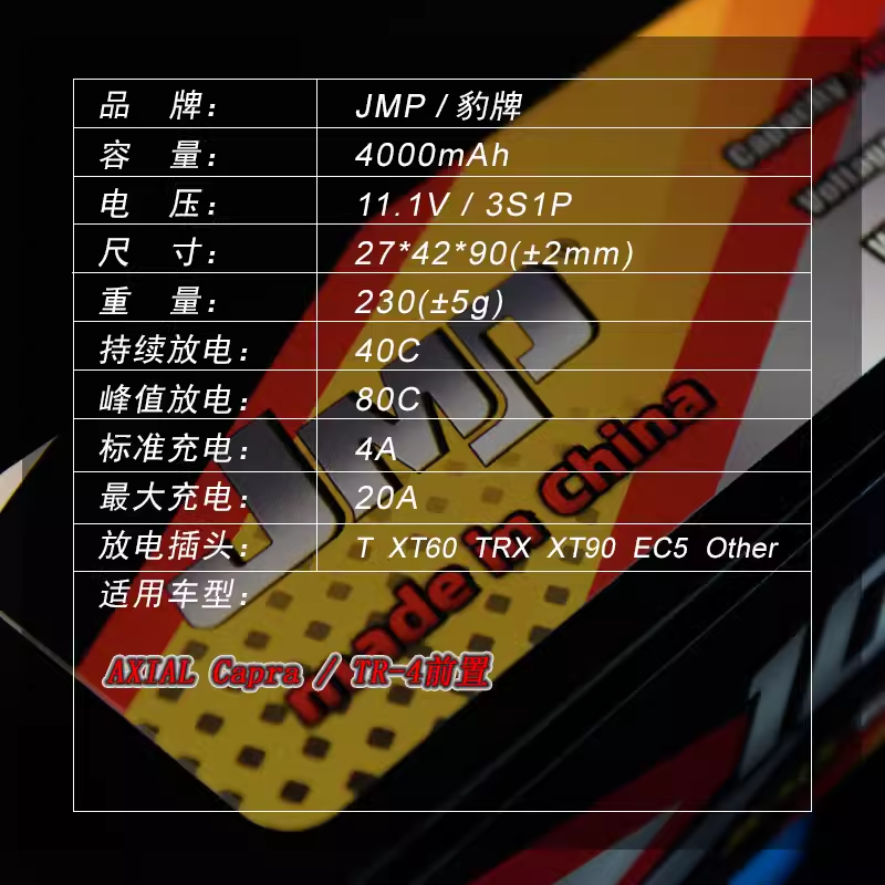 11.1V 短款 40C 4前置 女王 JMP豹牌电池4000MAH Capra
