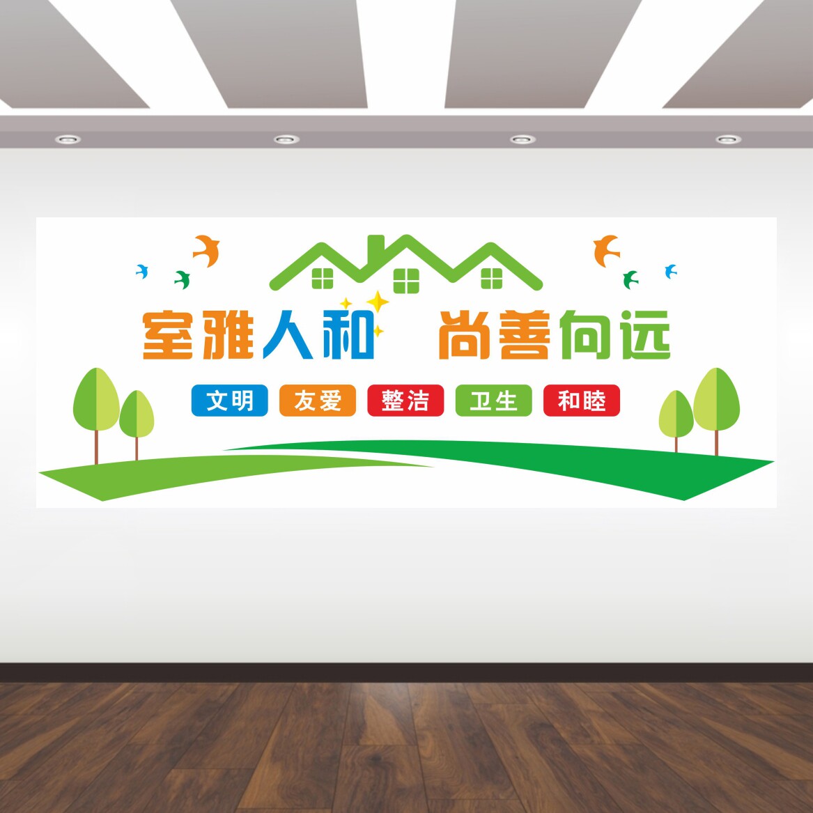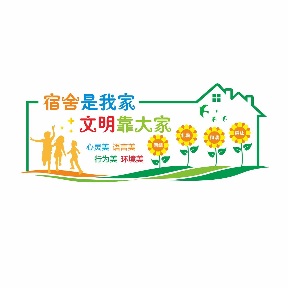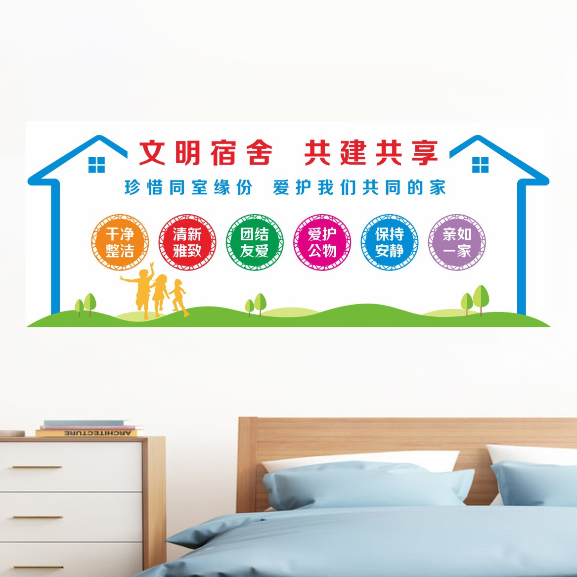 学校寝室装 饰布置公司工厂员工学生宿舍文化墙文明标语墙贴纸自粘
