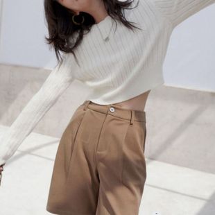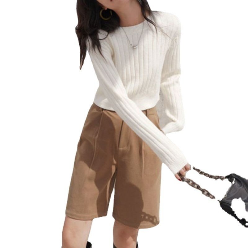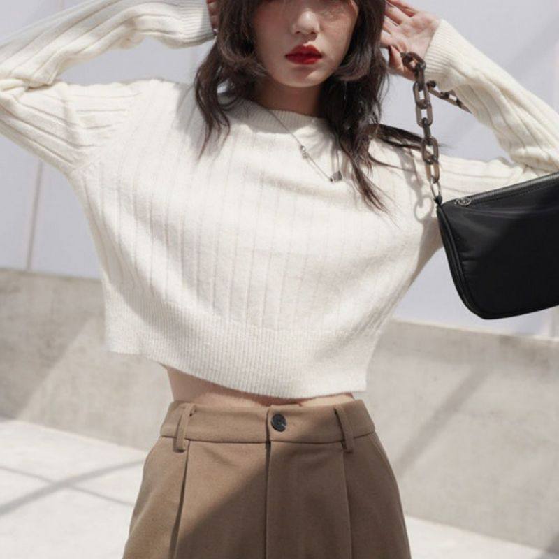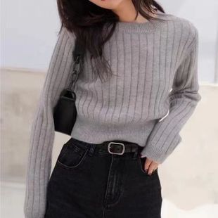 pit solid stripe long 上衣 Round sleeves圆领纯色坑条长袖 neck
