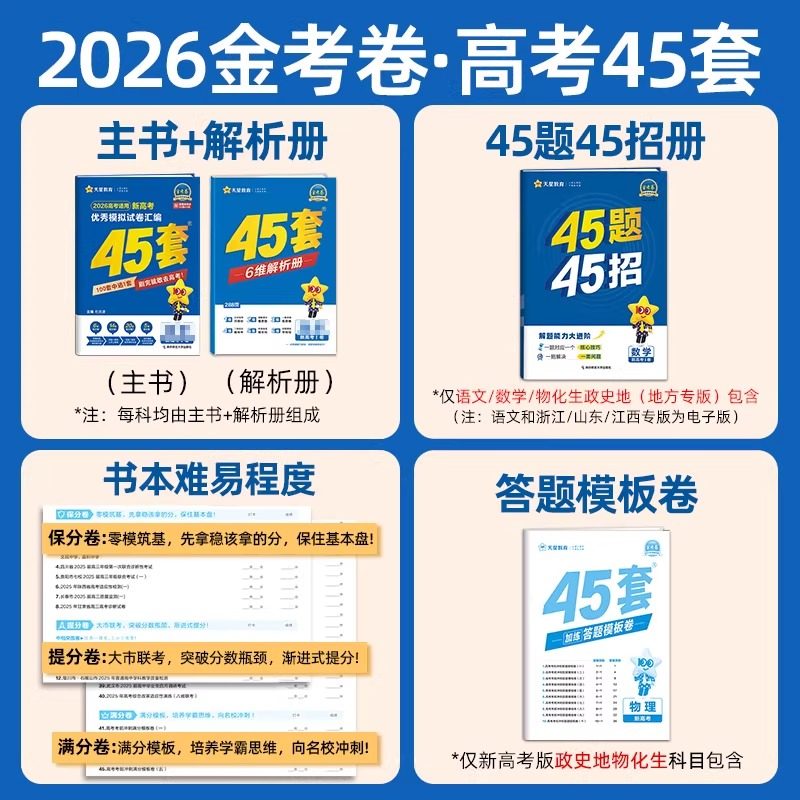 金考卷2026新高考45套模拟卷数学英语物理生物语文化学政治地理历史天星教育高考试题调研必刷题高中高三套卷真题一轮二轮复习卷