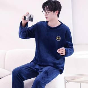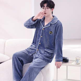 三层夹棉睡衣珊瑚绒加绒加厚法兰绒家居服冬天套装 秋冬季 男士 新款