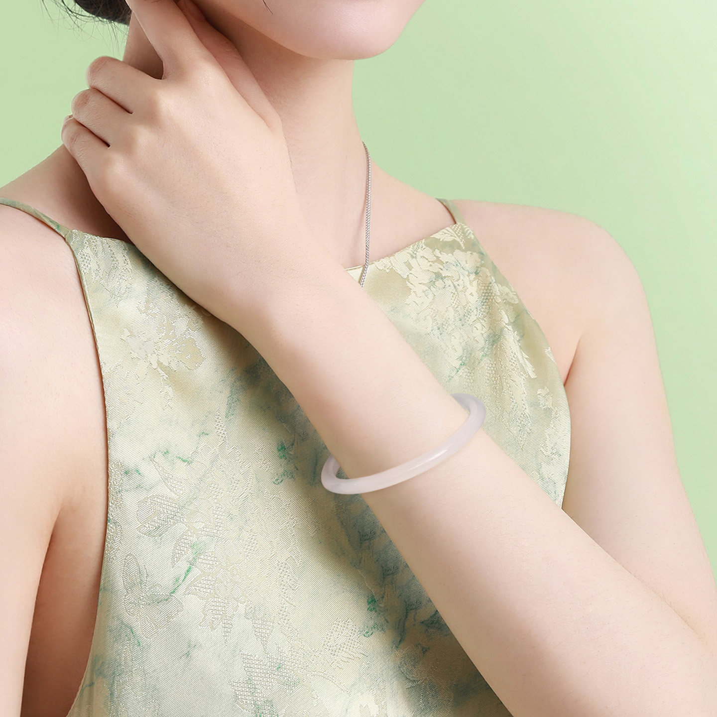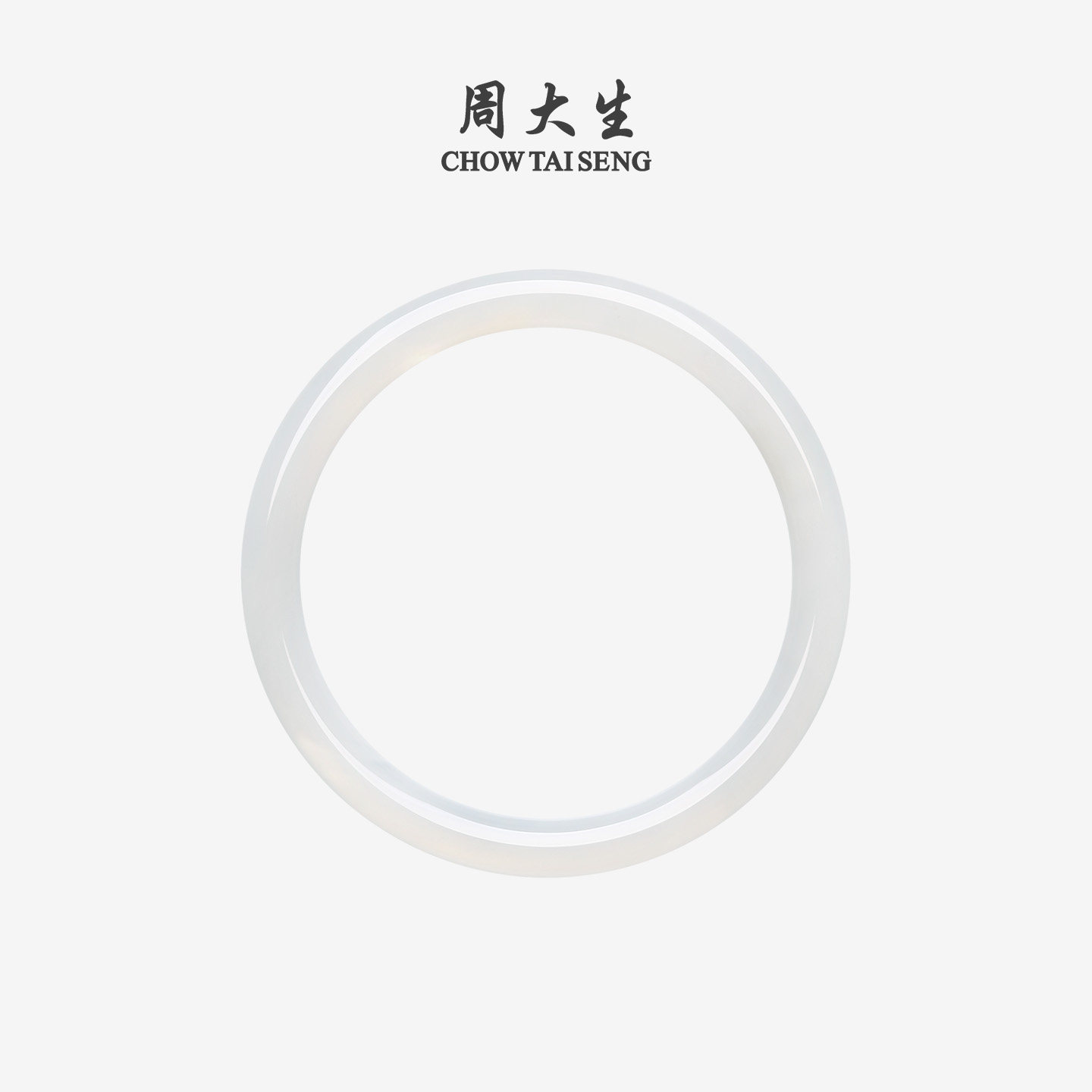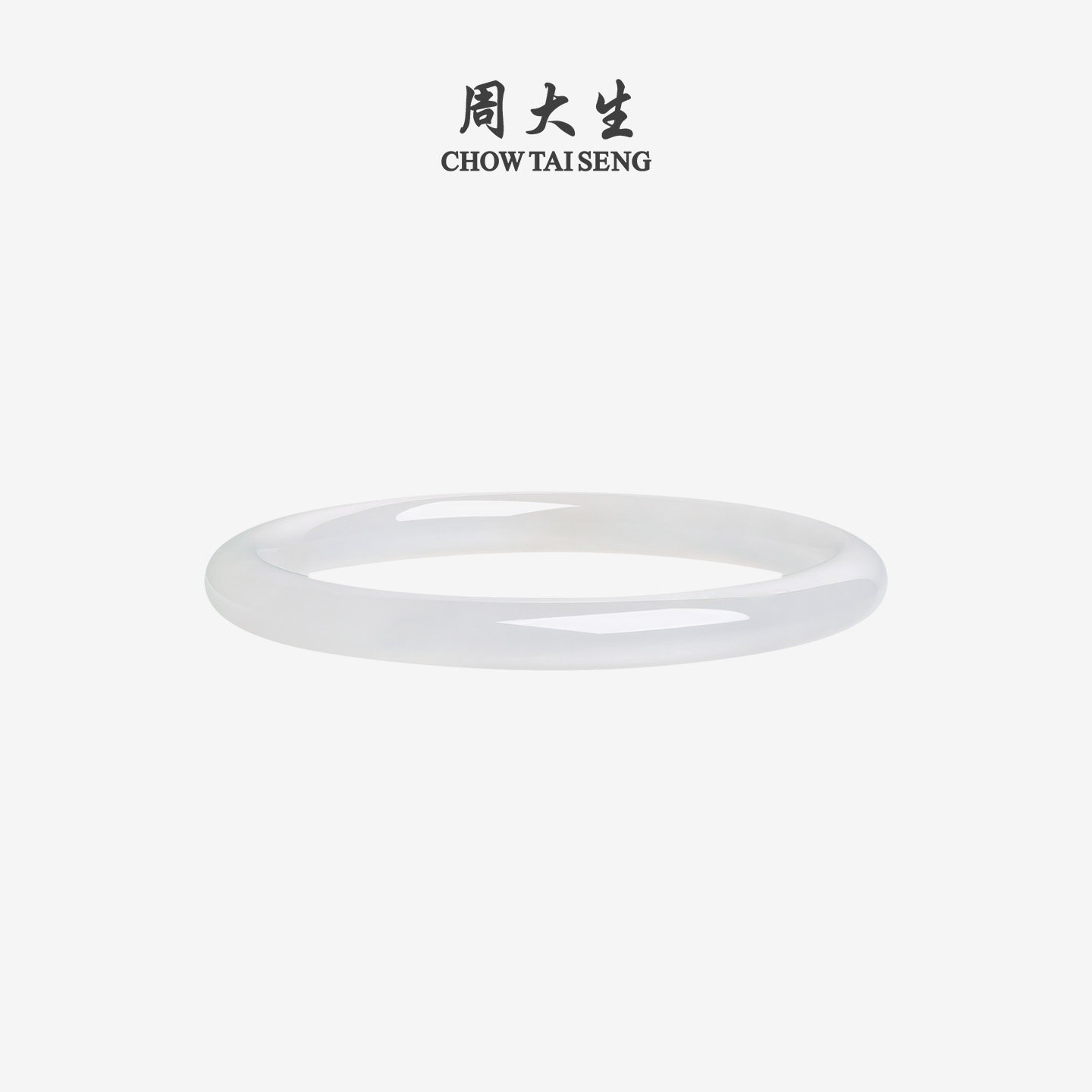 周大生白月光叮当镯荔枝冻白玉髓手镯女细条玉镯新年礼物送女朋友
