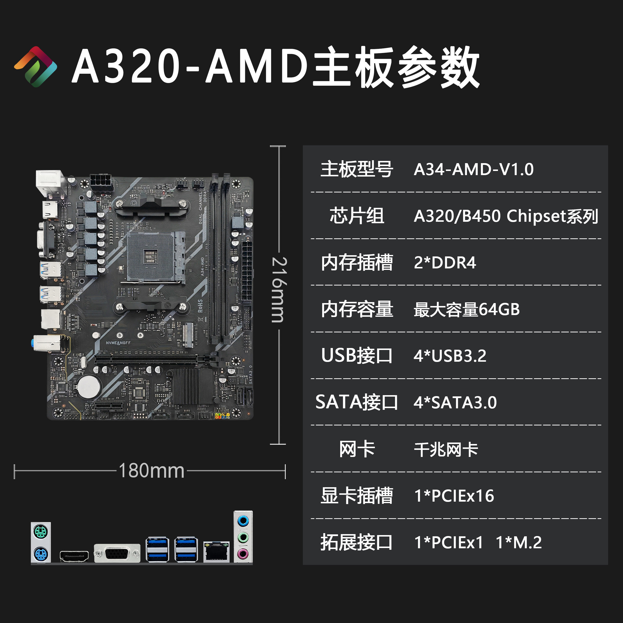 机A320电脑R5 2600主板b550 5代CPU台式 全新A520M主板AM4锐龙4