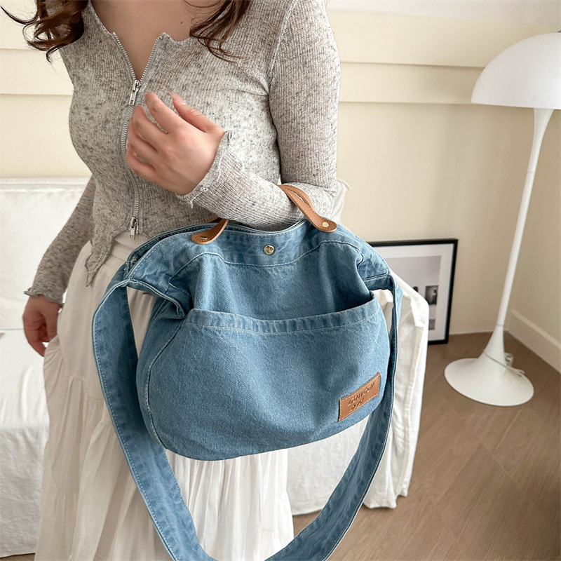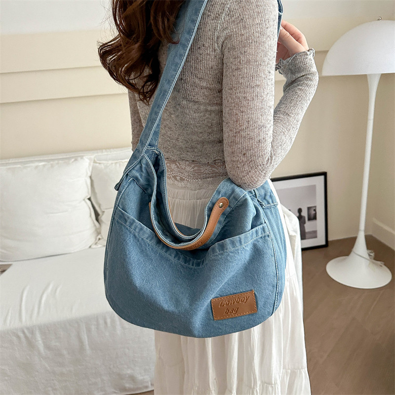 斜跨包男女通用大容量牛仔包日系休闲单肩包女班通勤包学生上课包