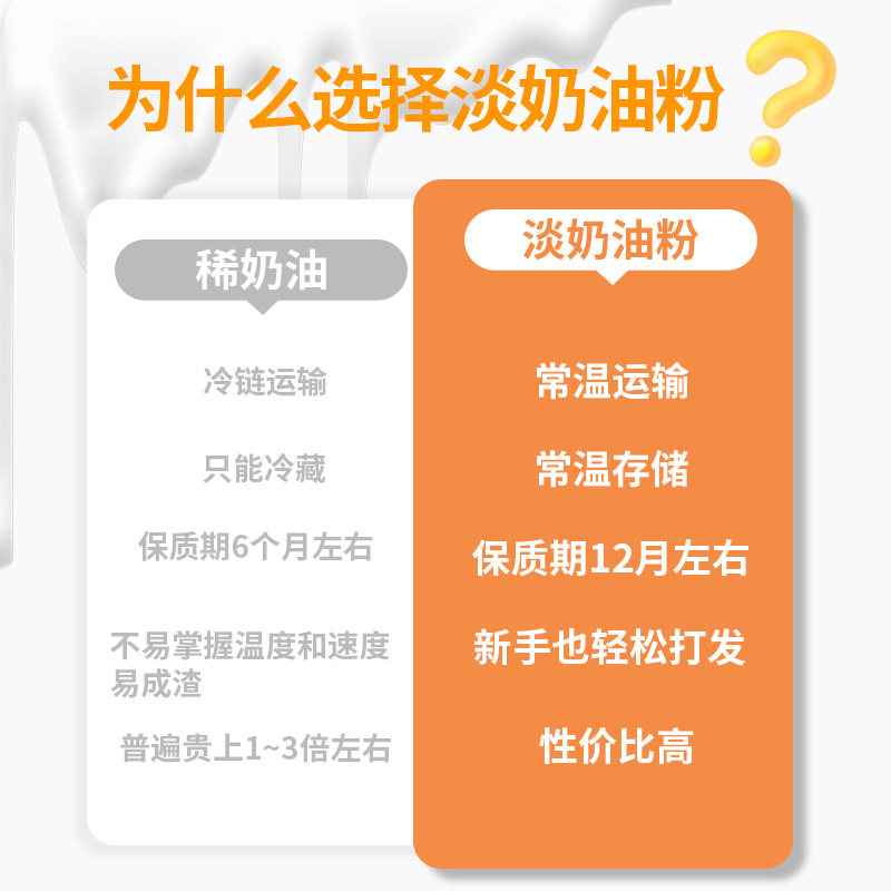 烘焙原料维益金钻淡奶油甜点植脂植物鲜奶油蛋糕裱花907g易打发