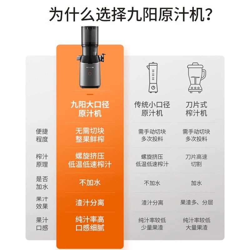 九阳榨汁机渣汁分离全自动小型家用原汁机大口径榨果汁机官方新款