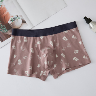 男士 杜比骑士平角内裤 莫代尔棉无痕性感中低腰印花宽边 包邮 满2条