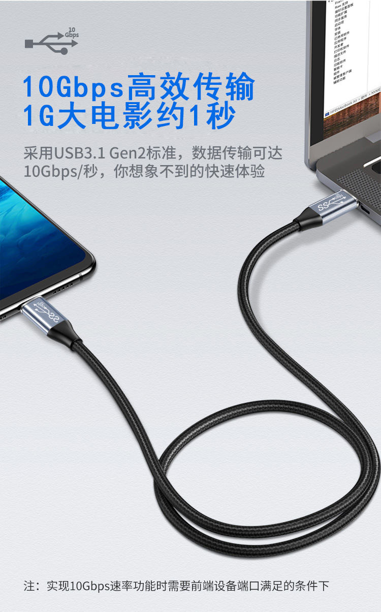 type c3.1全功能EMARKE芯片Gen2数据线PD100W快充线10GB音视频4K