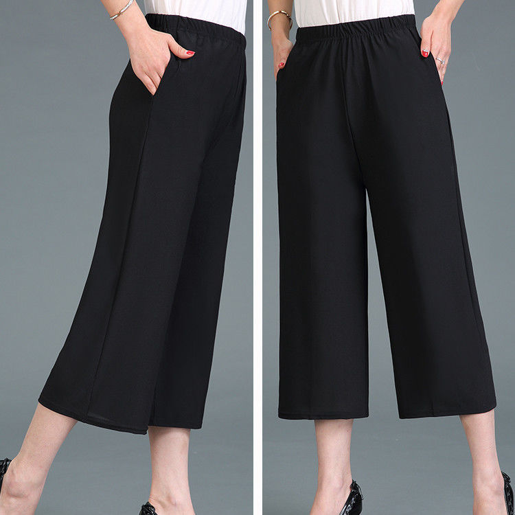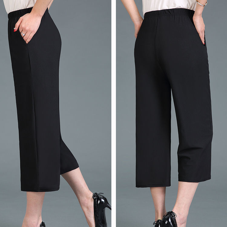 中老年女装 阔腿裙裤 夏装 妈妈宽松大妈女裤 七分裤 休闲裤 中裤