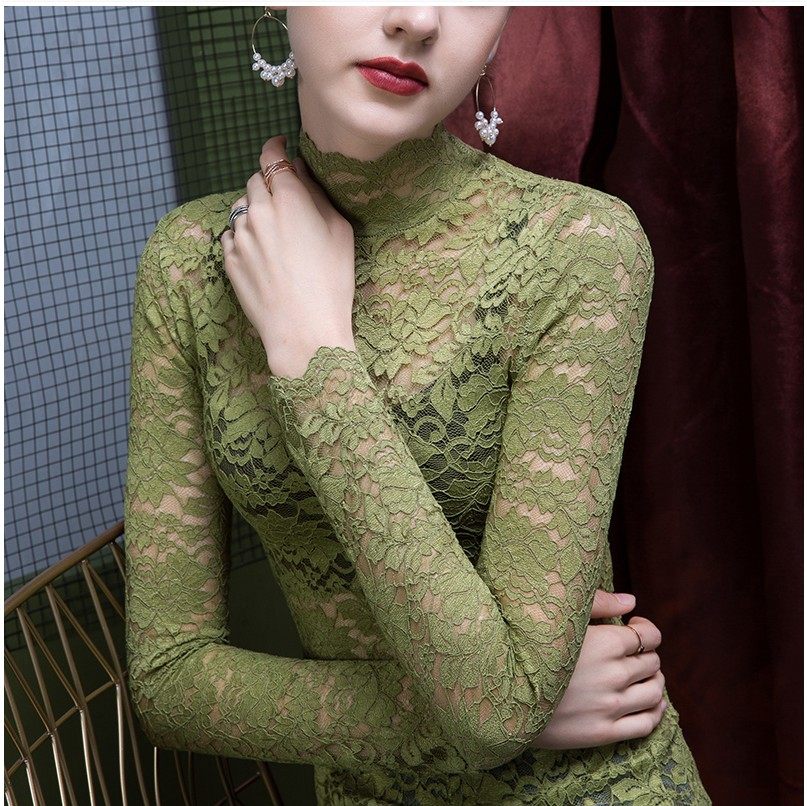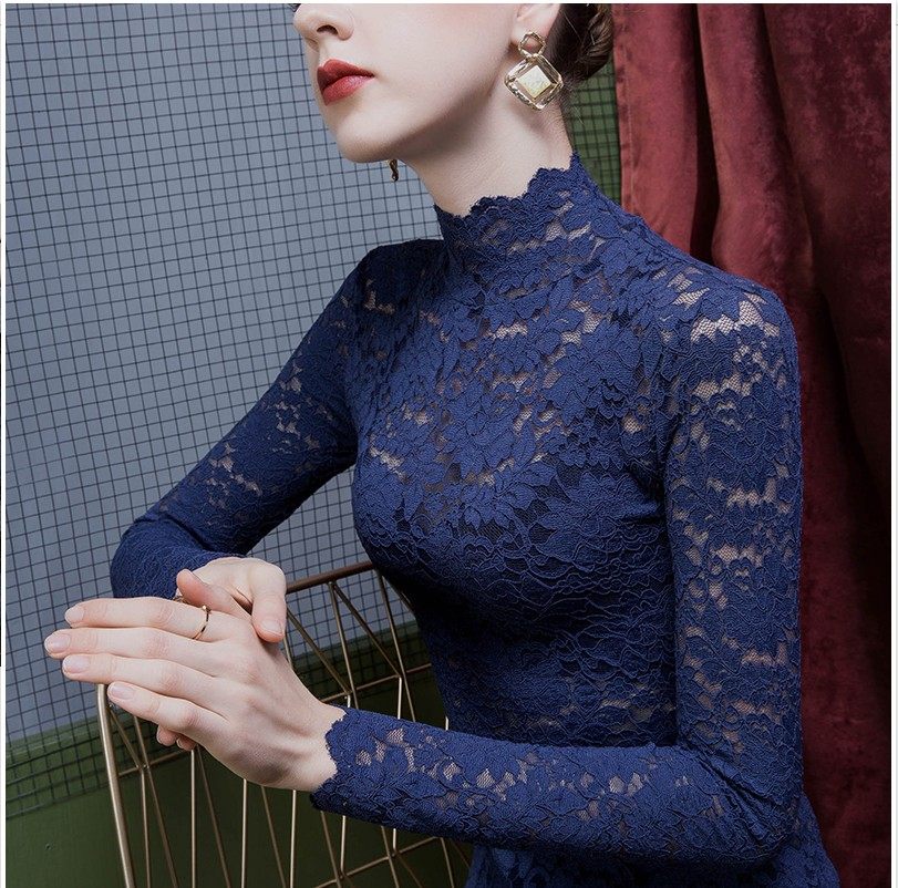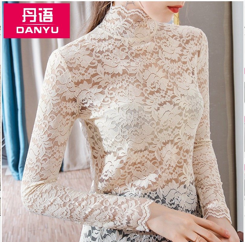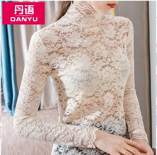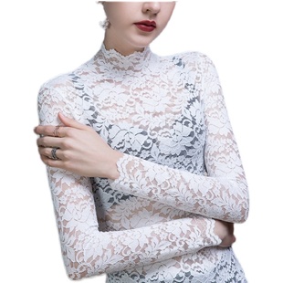 立领蕾丝打底衫 小衫 女网纱修身 长袖 春秋高领洋气欧货时尚 2021春季
