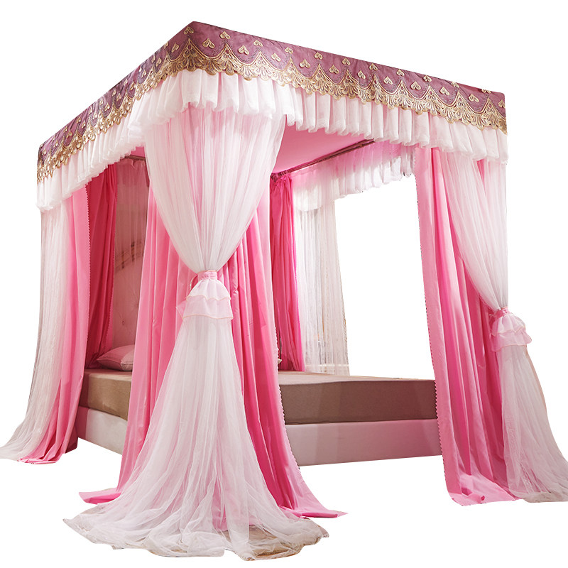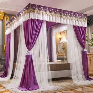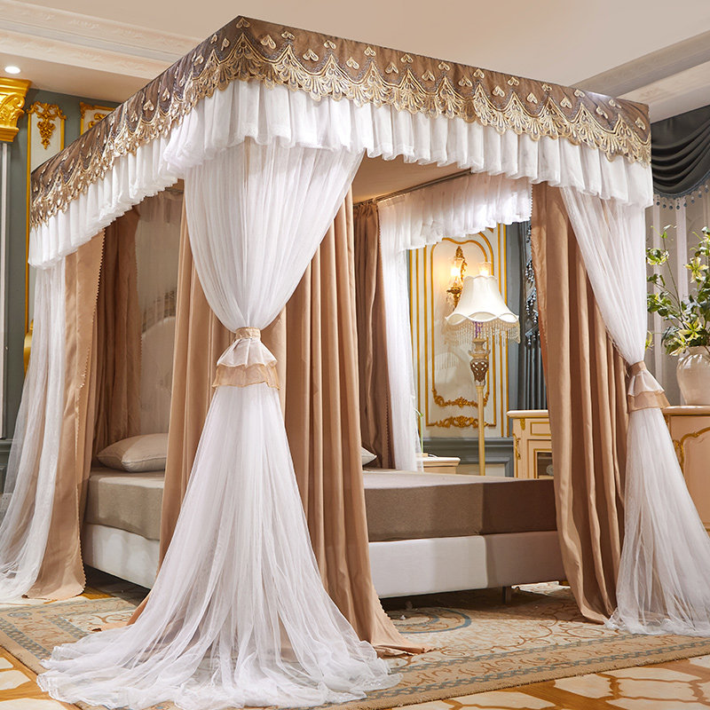 遮光不锈钢三开门落地蚊帐防尘新款 双层家用方便拆洗加粗挡风床幔