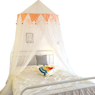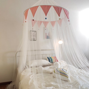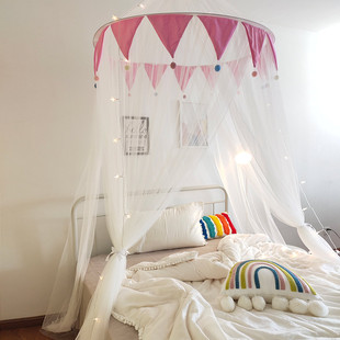 圆顶吊顶三开门蚊帐公主家通用免安装 床幔北欧简约毛球女孩无拼接