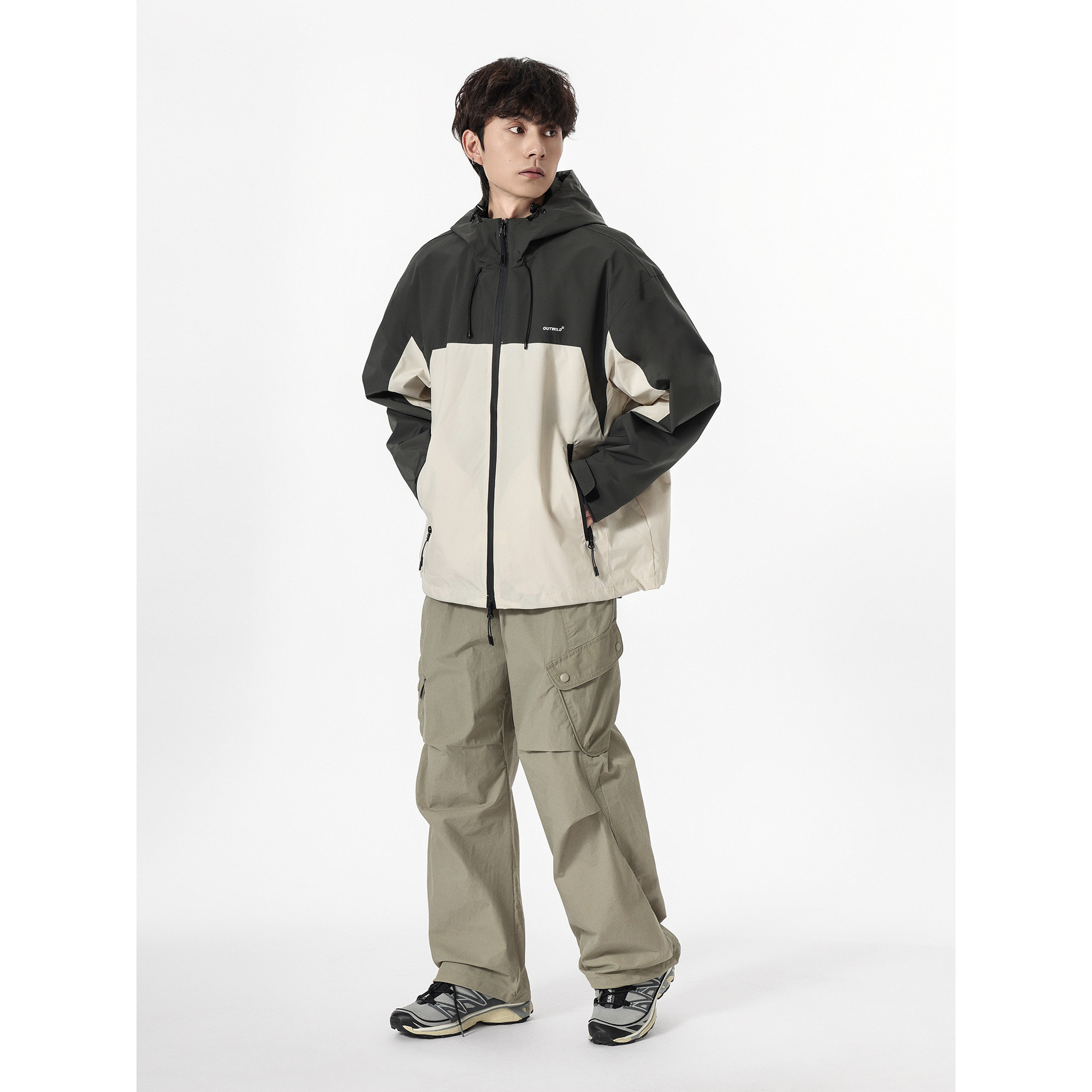 外套 休闲户外防水连帽夹克男女撞色拼接宽松工装 YOKE STUDIO美式