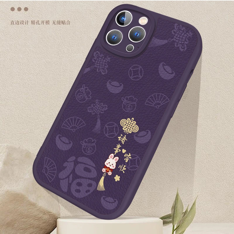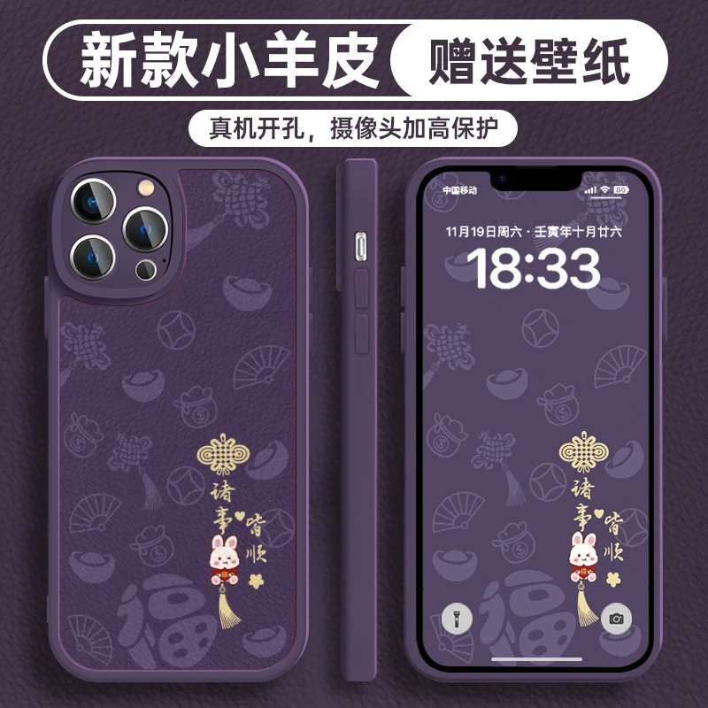 诸事皆顺兔子小羊皮适用苹果16pro手机壳iphone15max小米14华为mate60p70reno12荣耀200x100k50nova13findx6