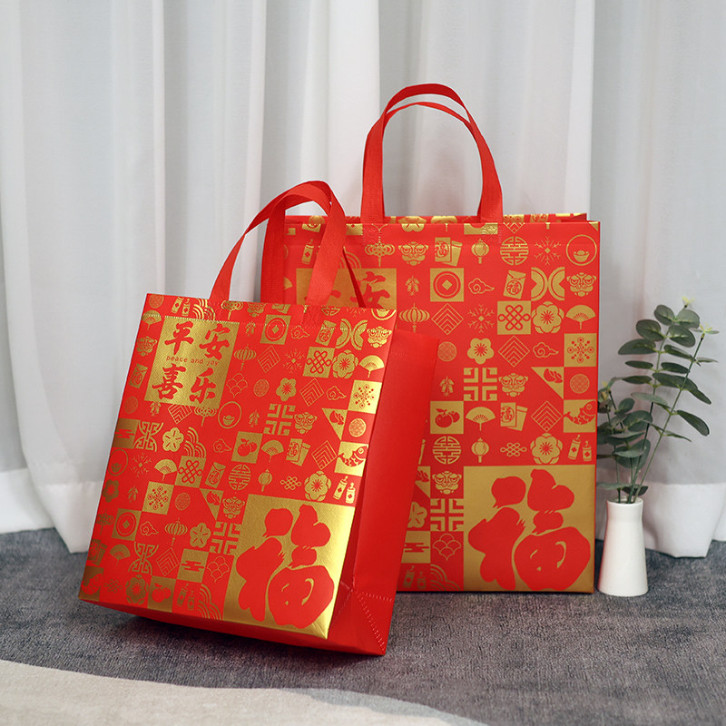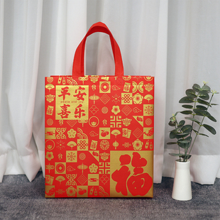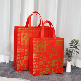 新年年货包装 袋红色礼品袋无纺布手提袋福字购物袋结婚伴手回礼袋