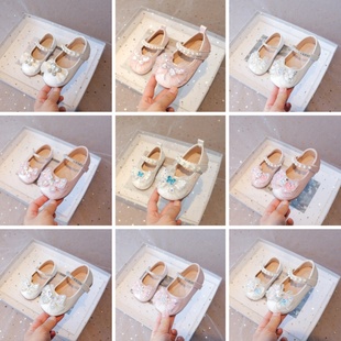女宝宝韩版 学生六一2025新款 女孩皮鞋 表演鞋 艾莎水晶鞋 女童公主鞋