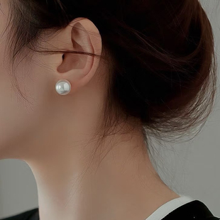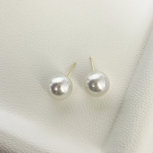 正圆亮大真爱迪生珍珠耳钉天然淡水18k金耳饰女2025新款 平替澳白