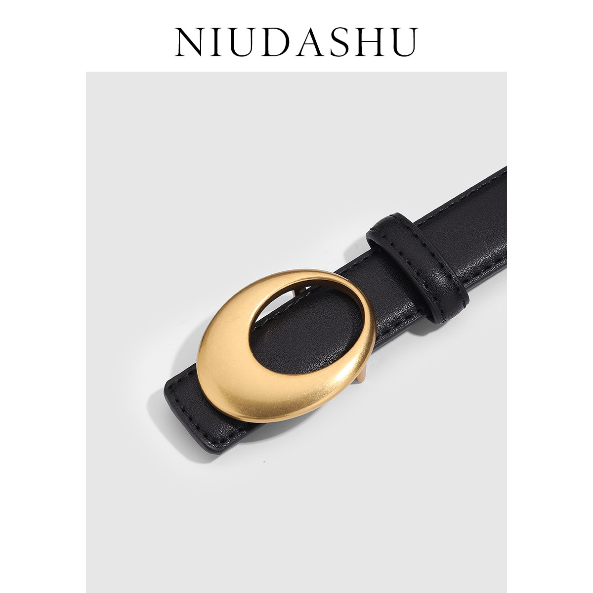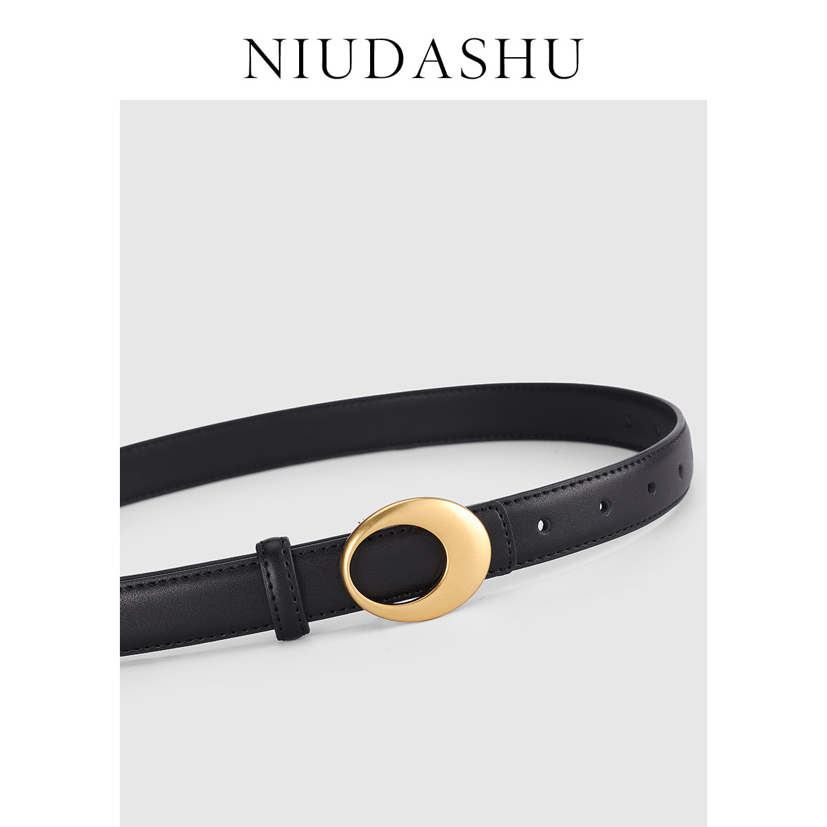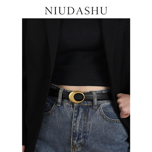 腰带 时髦潮流牛仔裤 平滑扣皮带女真皮装 饰简约百搭小众设计感韩版