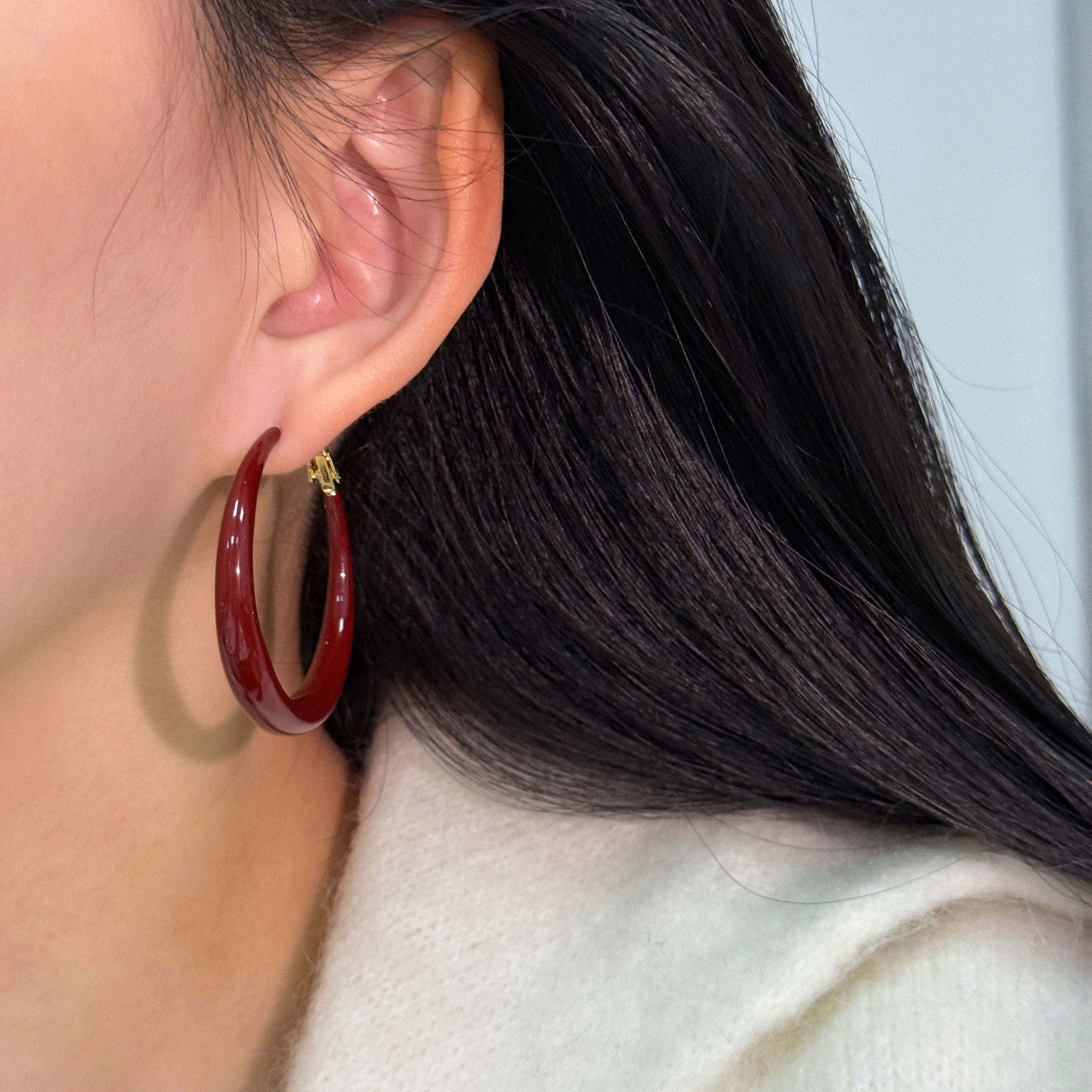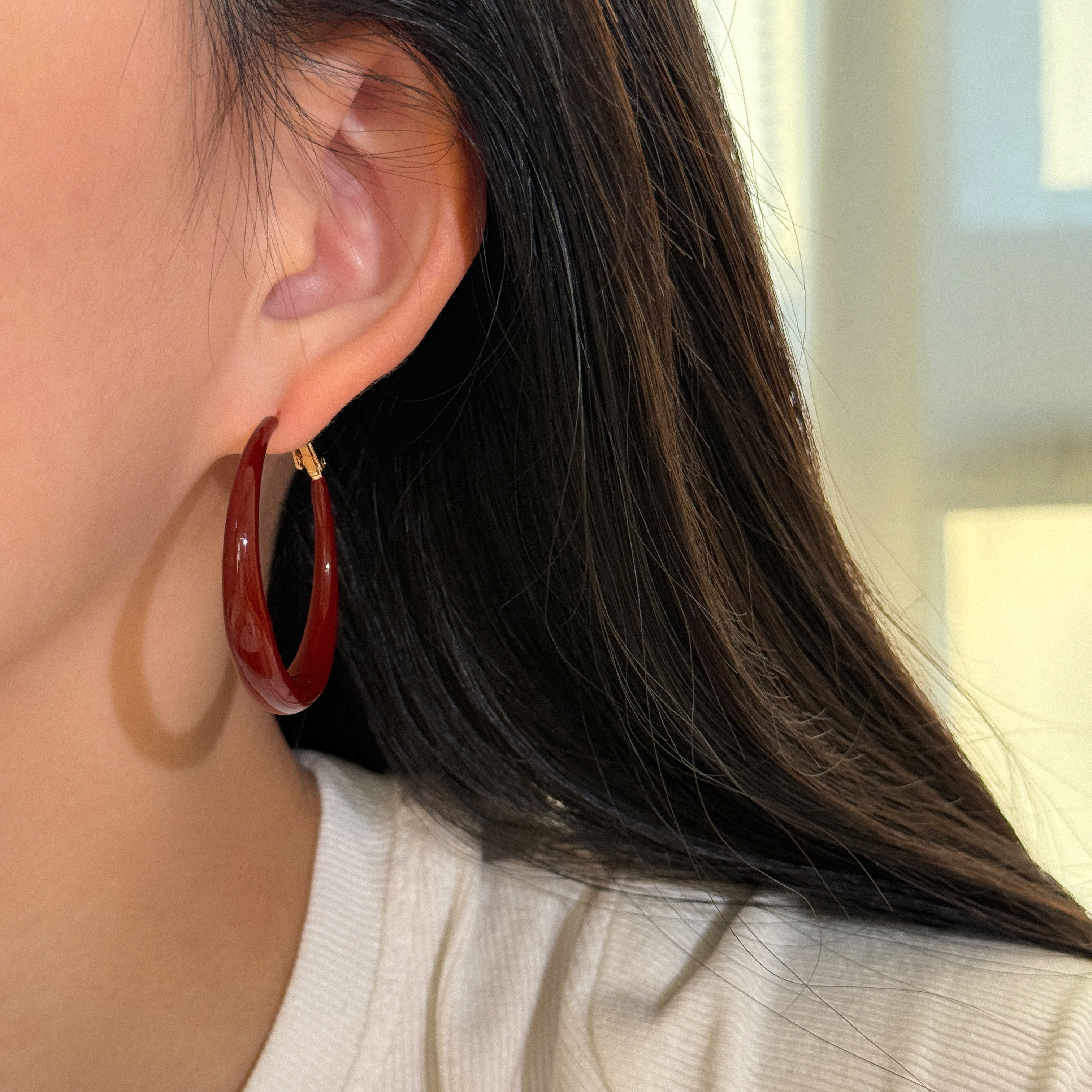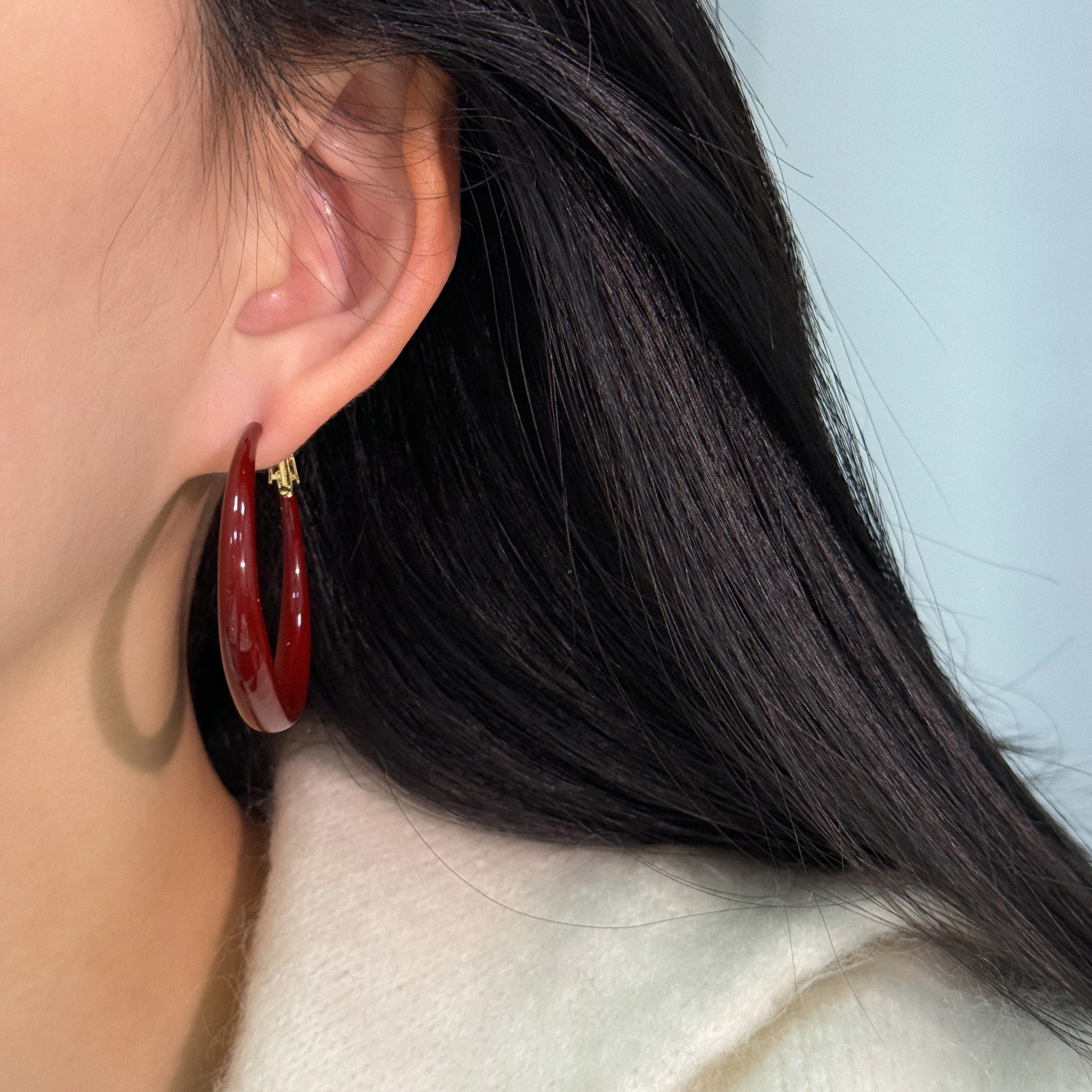 FLOAT浮漾酒红色耳圈2025新款 秋冬复古耳环女高级感气质耳饰耳夹