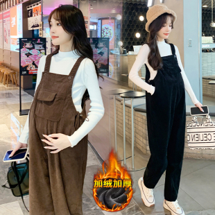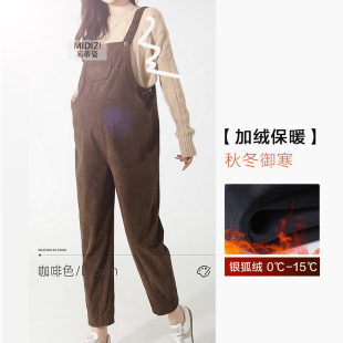 秋冬款 外穿灯芯绒免脱宽松加厚加绒裤 孕妇装 新款 子 冬季 孕妇背带裤