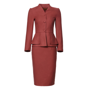气质名媛修身 红色冬裙子高级感女装 秋冬季 女士两件套裙装 职业套装
